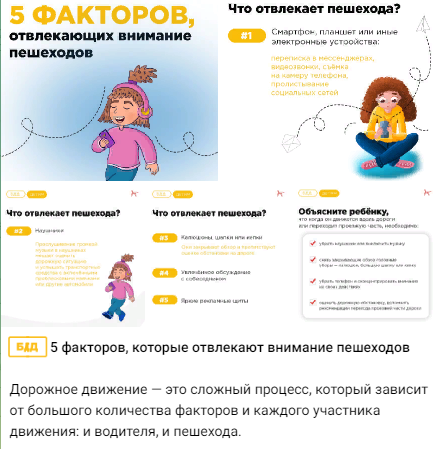 факторы, отвлекающие внимание пешеходов (https://t.me/institut_vospitaniya/3935; https://vk.com/wall-113551114_12496);