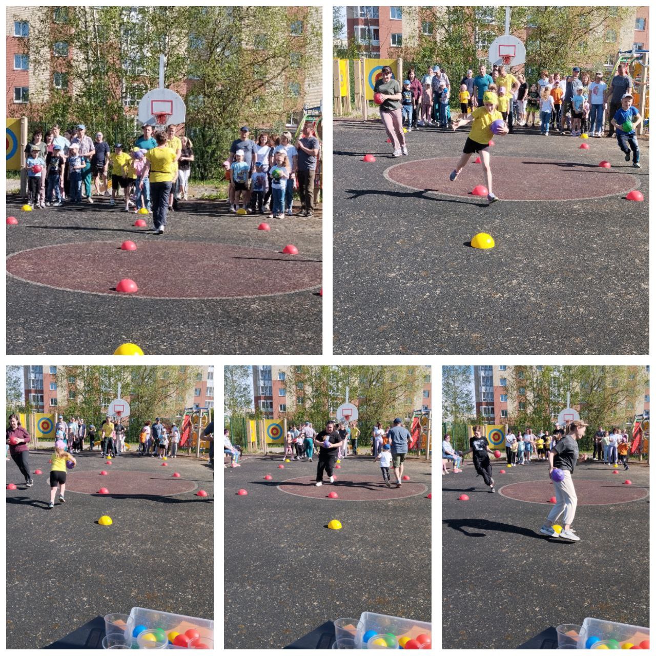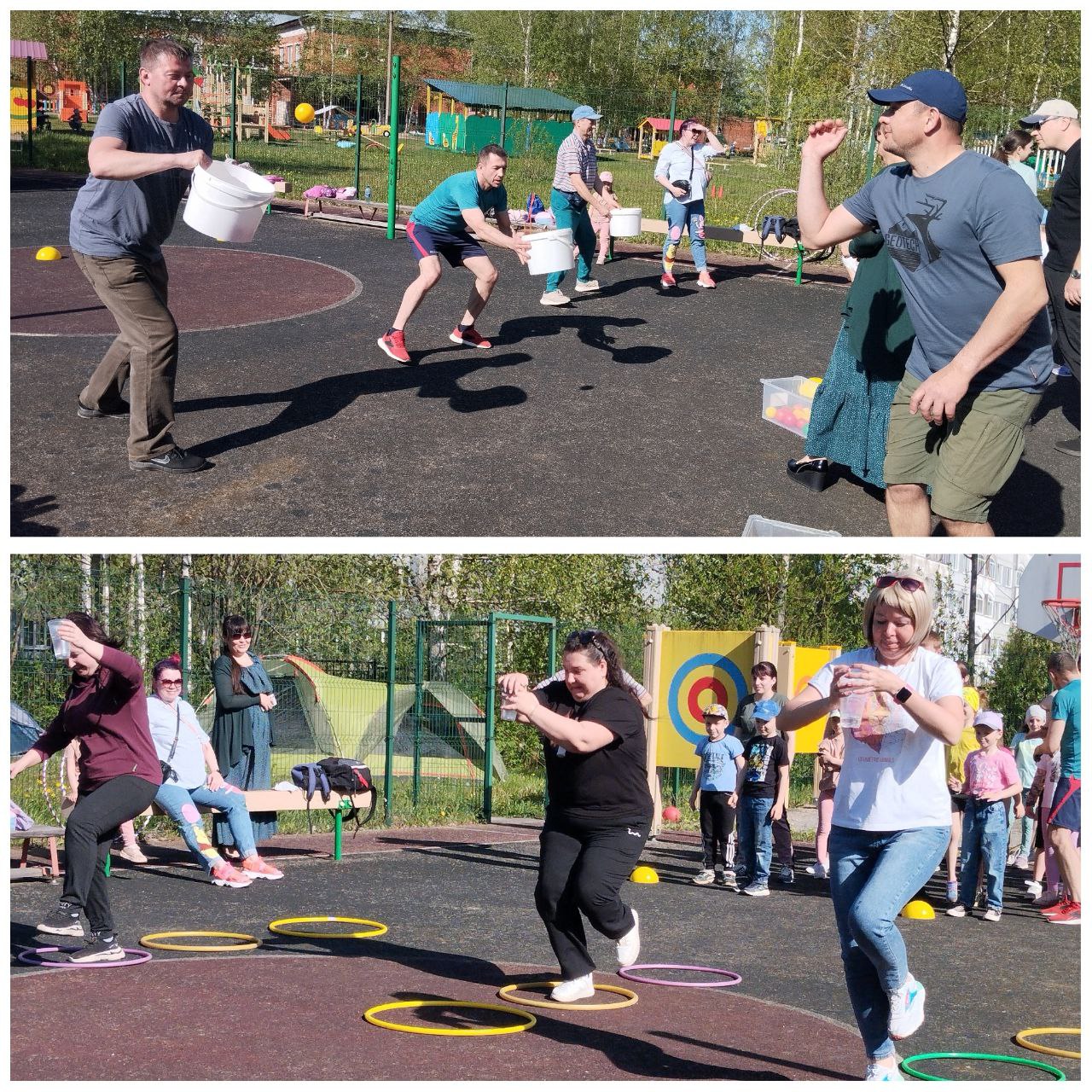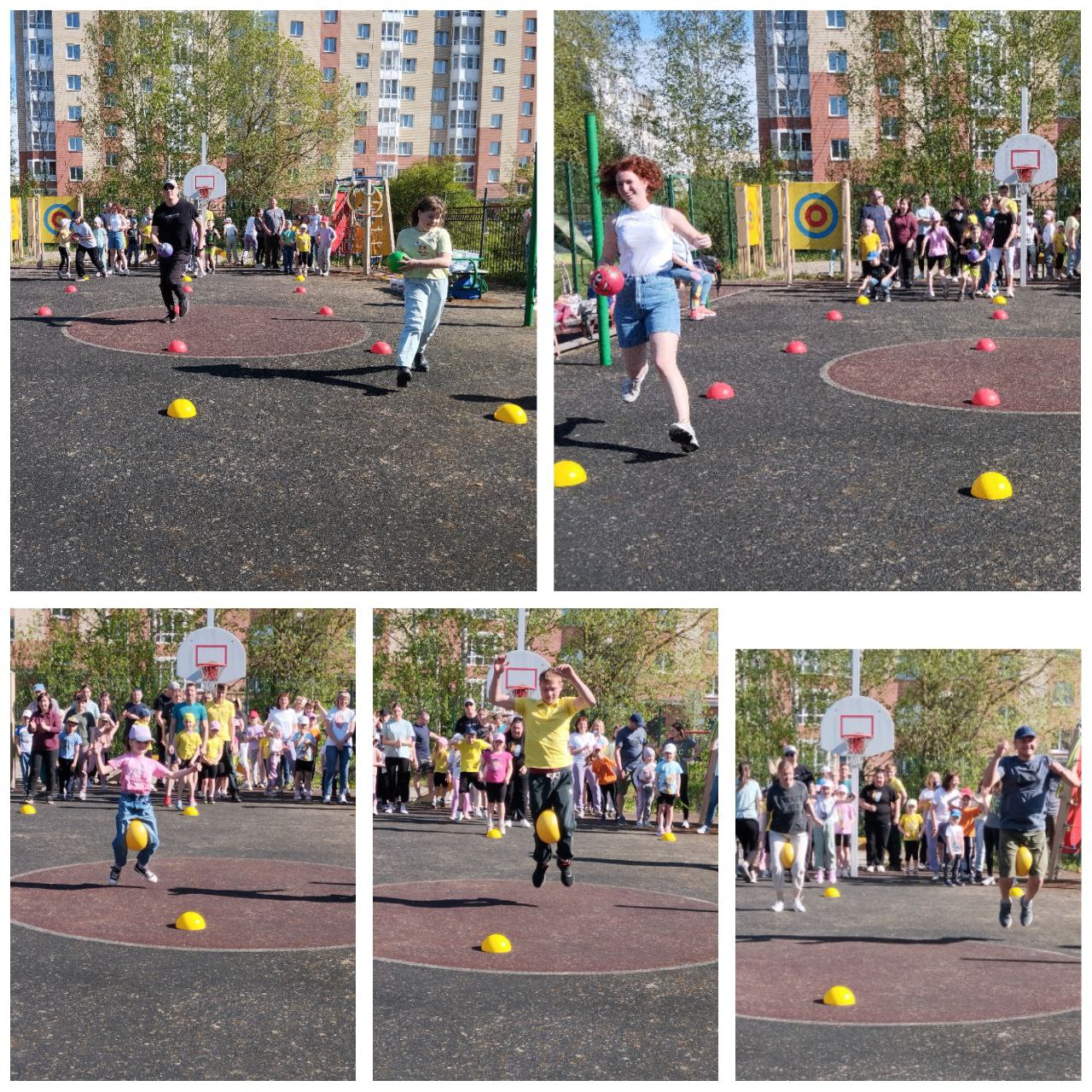 На спортивной площадке родители вместе с детьми соревновались в ловкости, быстроте и смекалке.