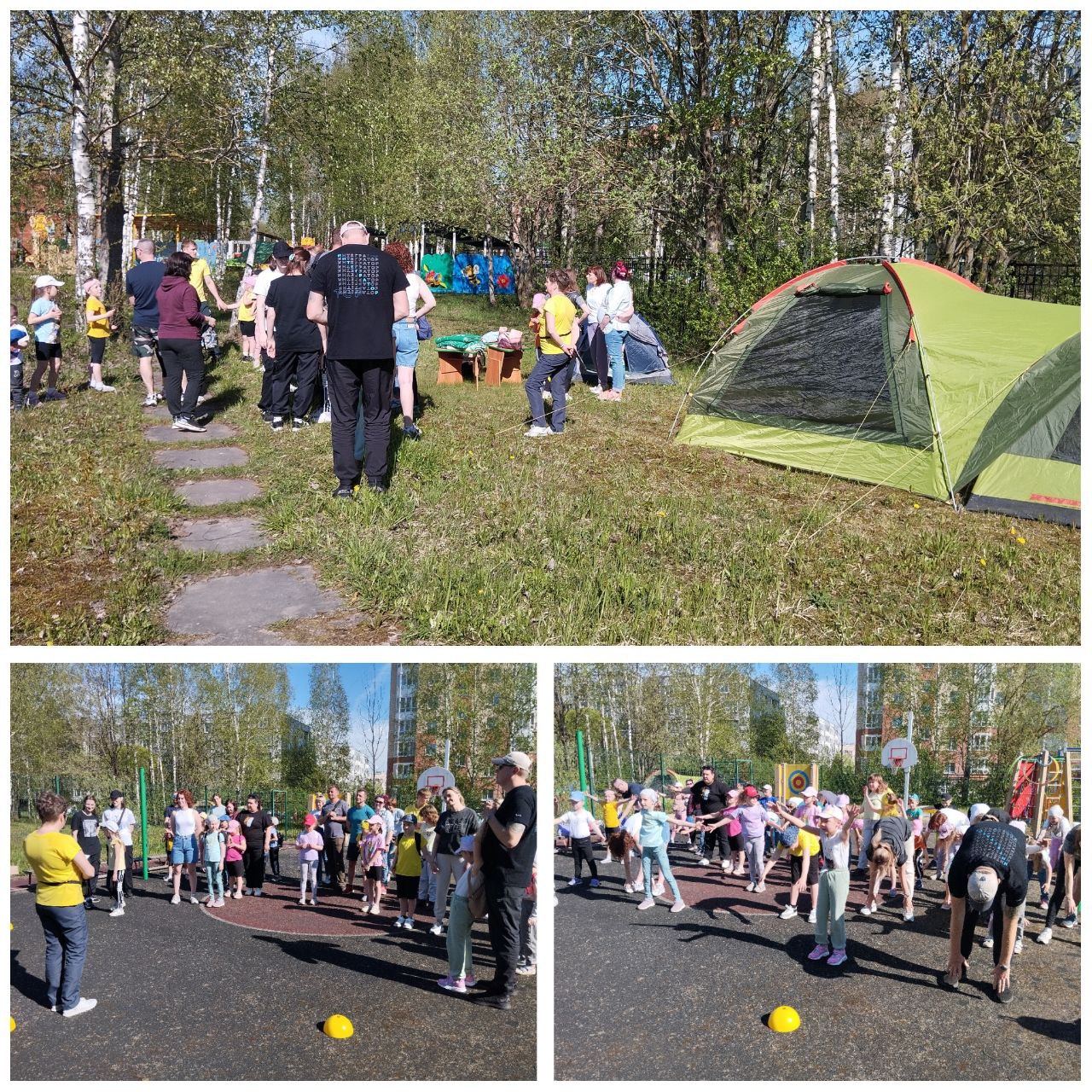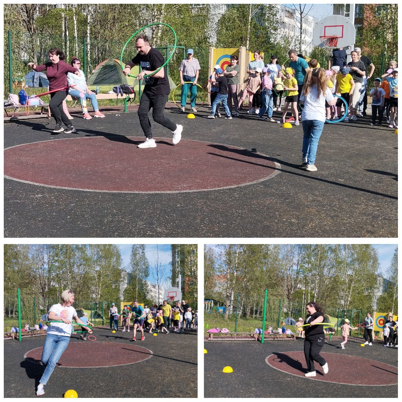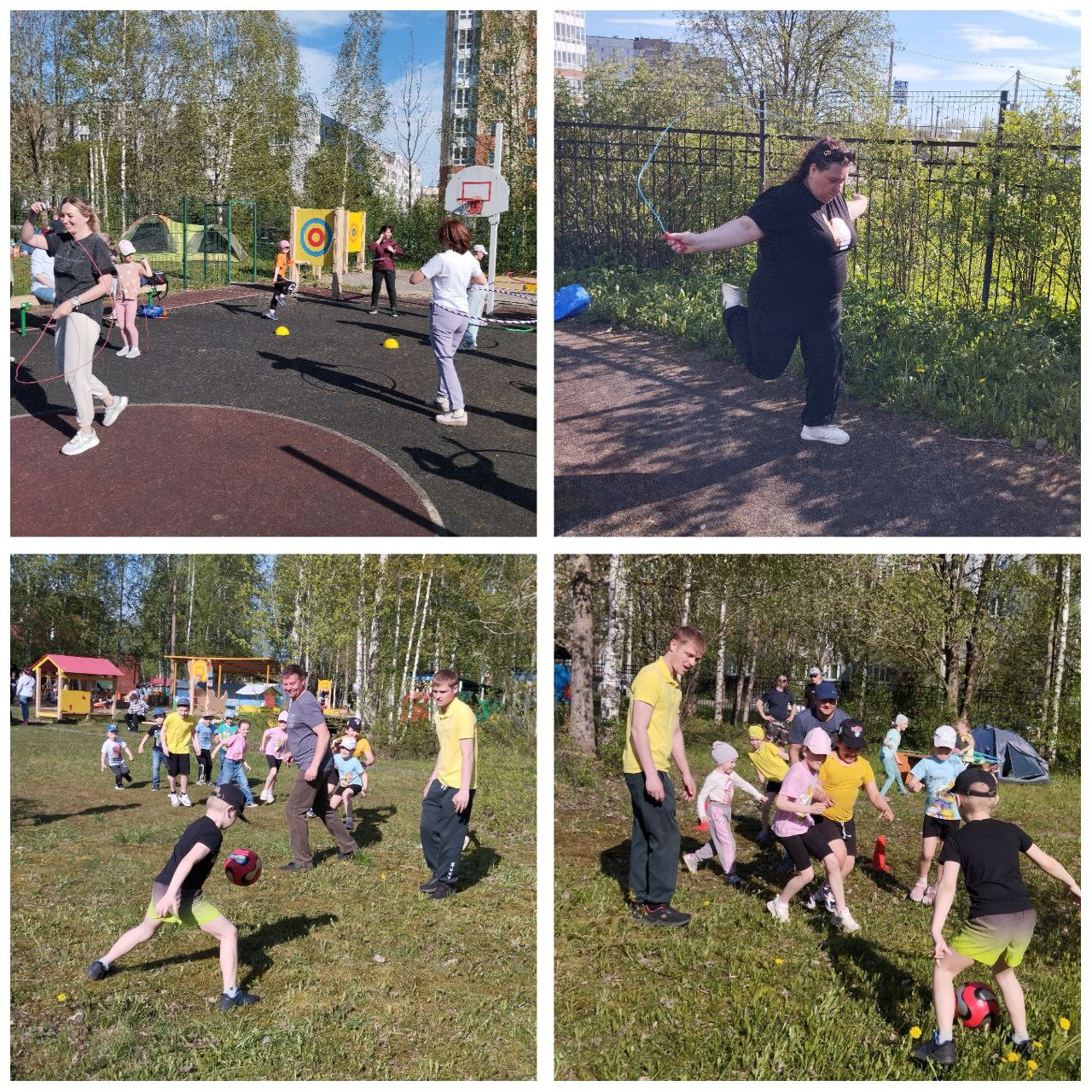 На спортивной площадке родители вместе с детьми соревновались в ловкости, быстроте и смекалке.