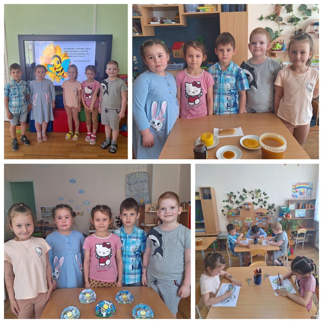 В ходе проекта ребята познакомились с профессией пчеловода, узнали о жизни пчелиной семьи. Так же познакомились с медоносными растениями родного края. В заключении смастерили пчёлку на полянке, рассмотрели соты, пчелиный воск и разновидность мёда.