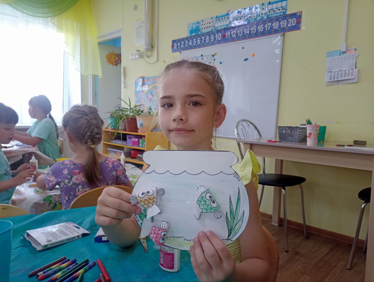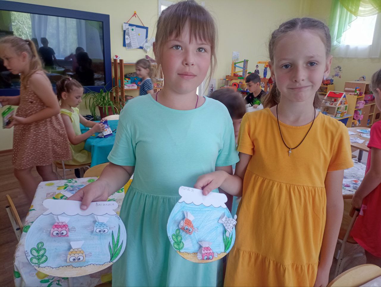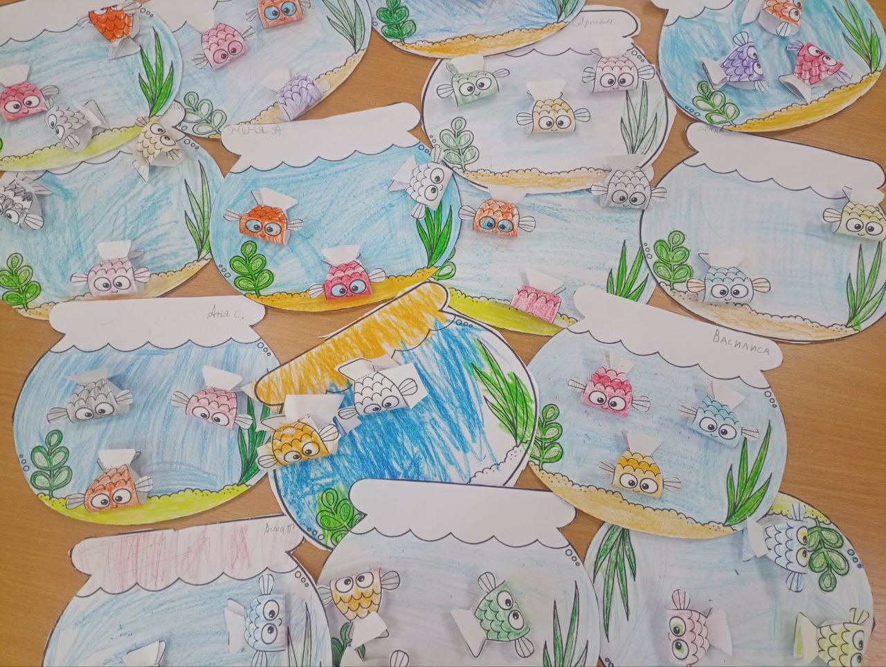 Ребята групп "Вишенка" и "Радуга" сделали каждый свой аквариум с золотой рыбкой...