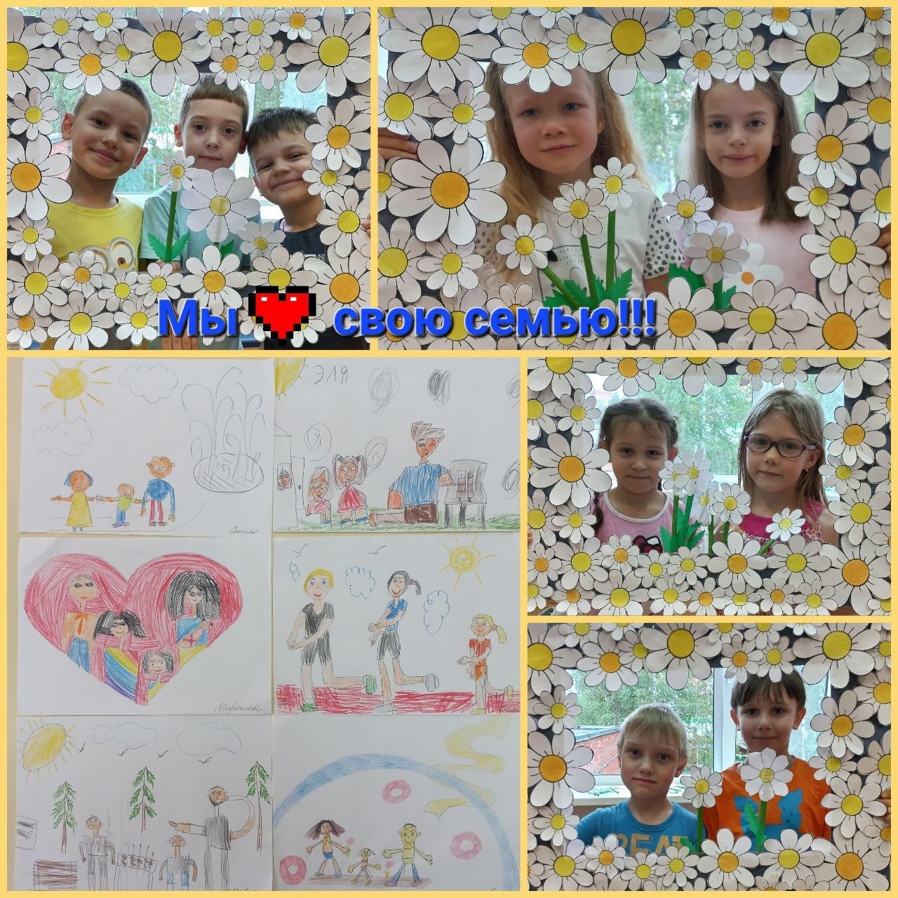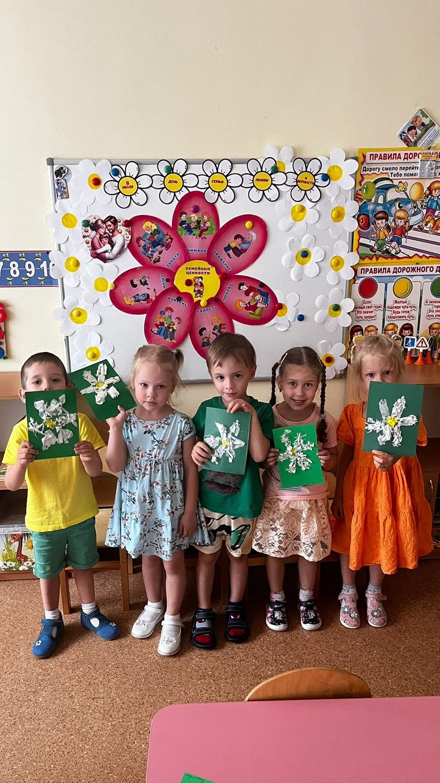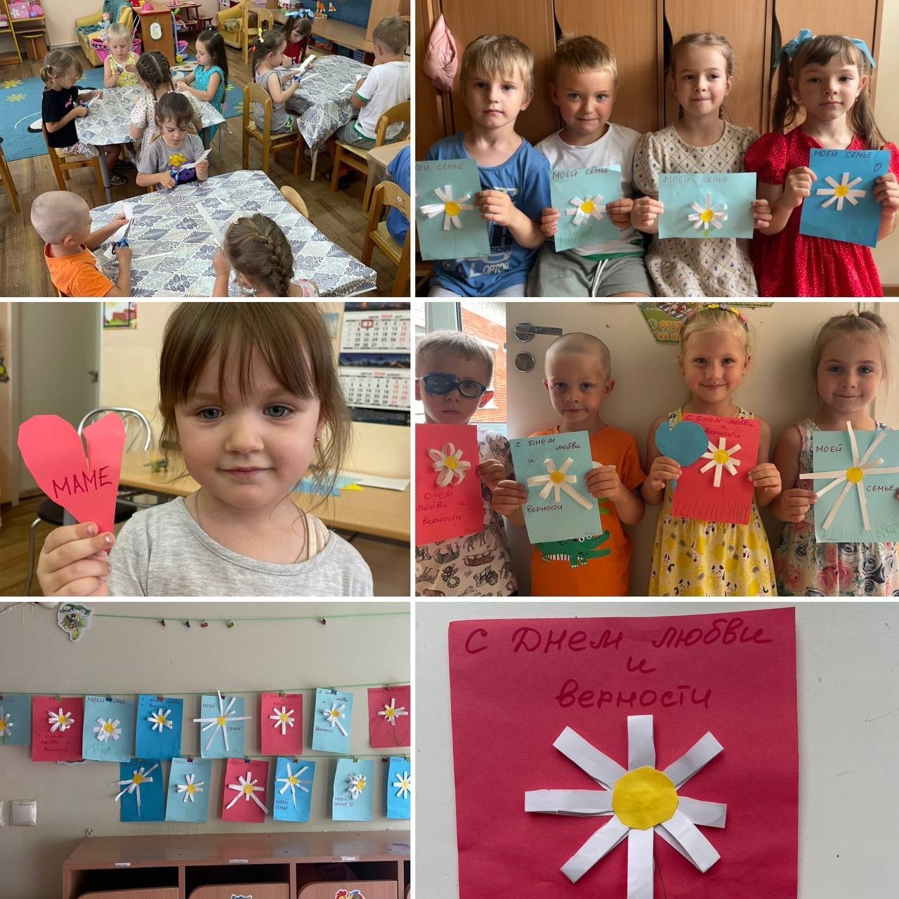 Ребята из группы "Золотой ключик " сделали открытки для своей семьи с символом праздника - ромашкой.