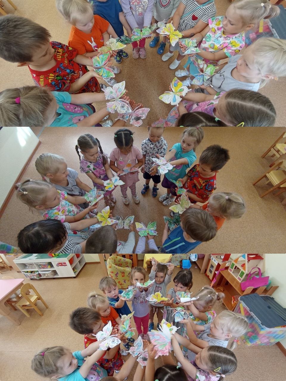 В группе "Земляничка" был организован познавательный и творческий день "День бабочек". В ходе этого дня дошколята получили возможность познакомиться и систематизировать свои представления о многообразии бабочек, их строении, образе жизни, а также продолжить своё развитие в художественном творчестве.