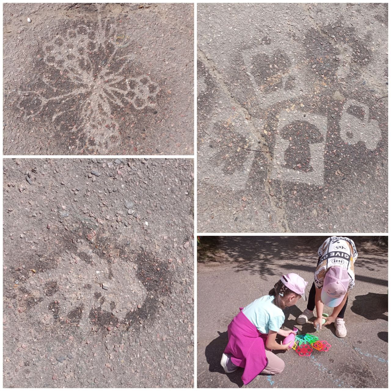 никогда не знаешь, что может получить в процессе работы. Так и ребята группы "Вишенка и Радуга ", даже не предполагали, что можно рисовать водой на асфальте.... И вот что получилось....