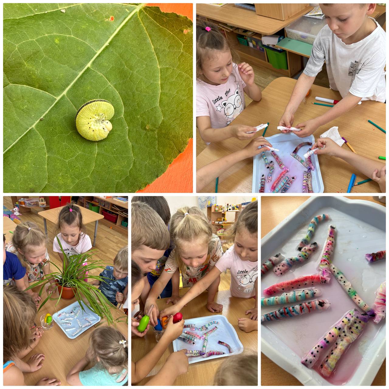 Гусеница стала постепенно окрашиваться и вытягиваться). Восторг у детей! Наши гусеницы на глазах ожили!